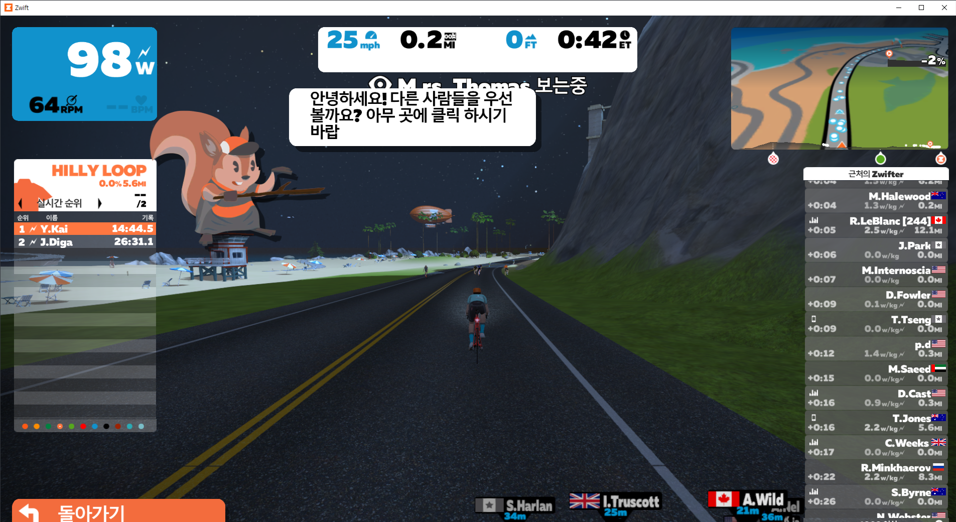 궁금해서 관전 모드로 먼저 실행해보았습니다. 유투브나 다른 블로그에서 많이 보던 화면이죠. (저사람들은 저렇게 빨리 달리는데 나는...ㅠㅠ)