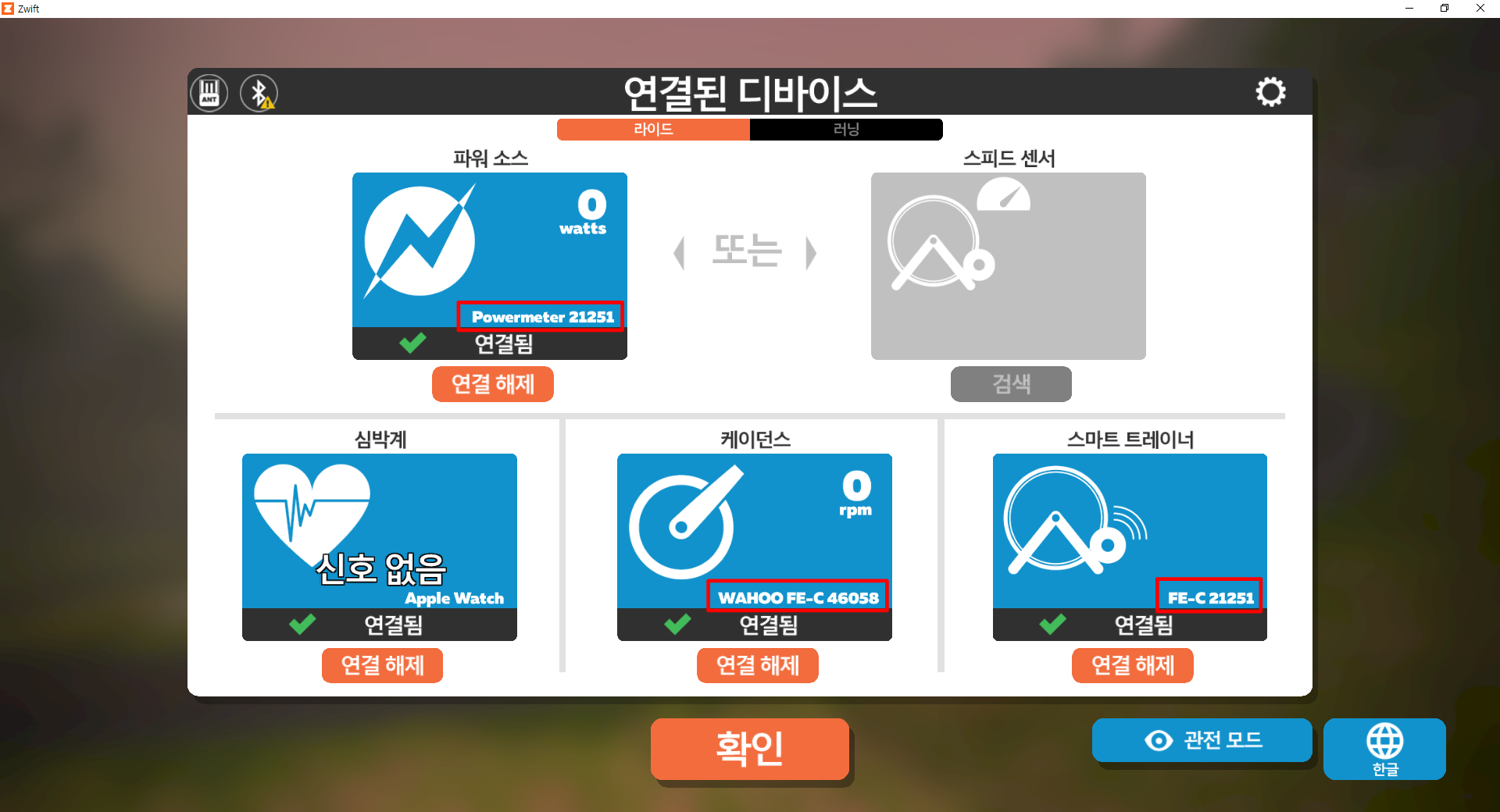 즈위프트 라이딩 설정