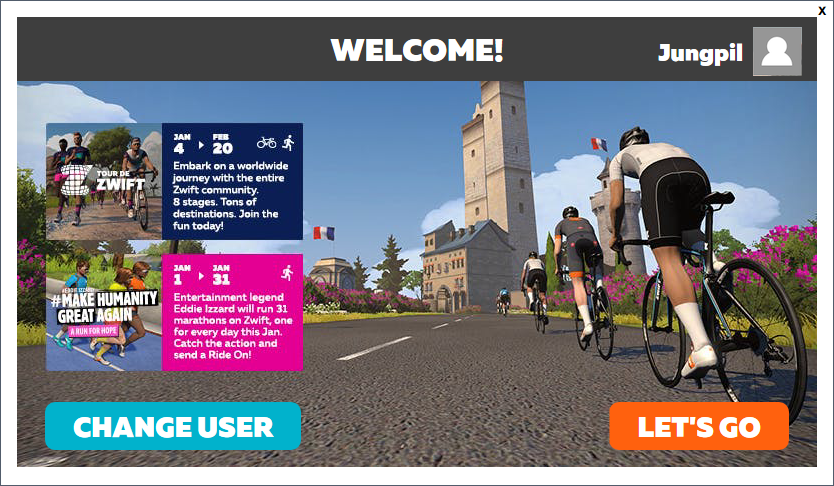 이제 즈위프트를 실행해보도록 할까요? 블로그 포스팅 하는 시점을 기준으로 하기때문에 초반에 삽질했던 부분은 제외하고 이야기 드리도록 하겠습니다.