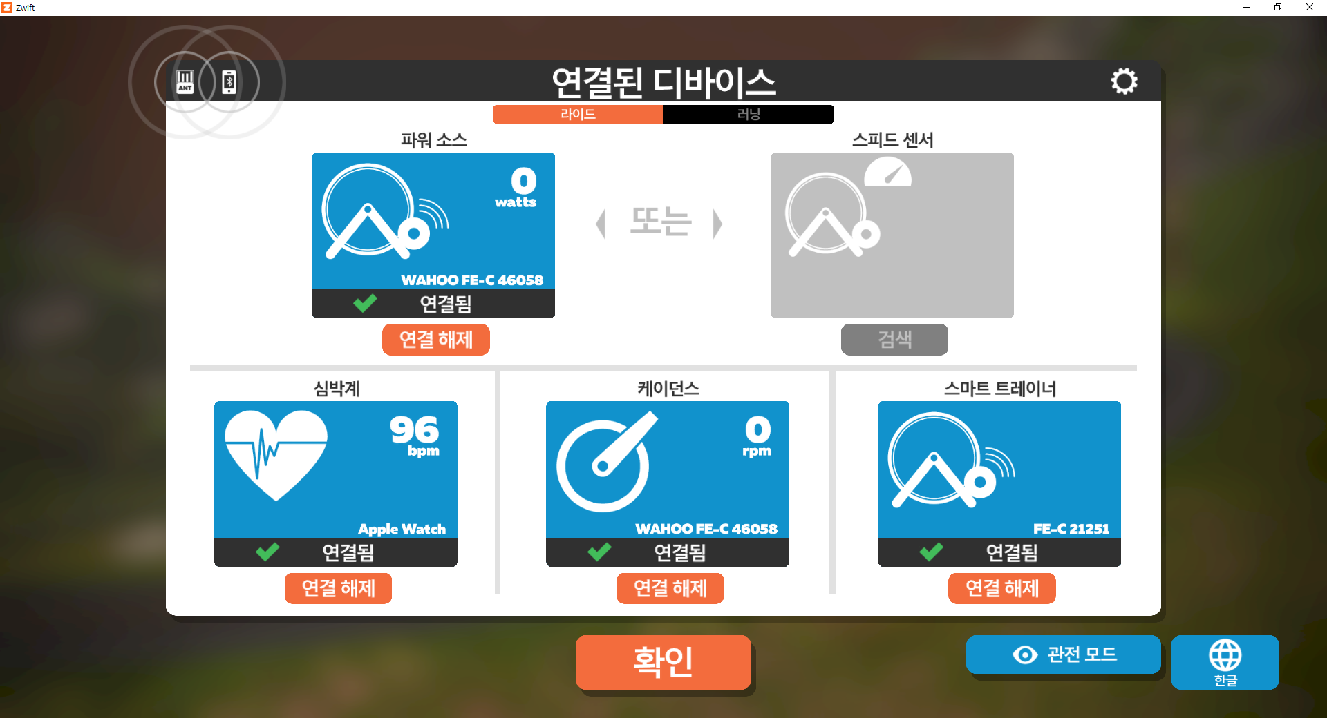 즈위프트 라이딩 설정
