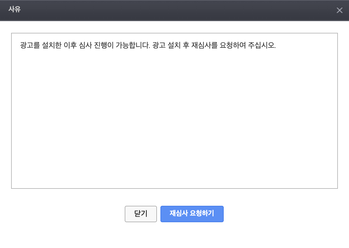 그리고 블로그에서 심사 요청을 클릭하게 되면 상단 이미지와 같이 나타나게 됩니다.