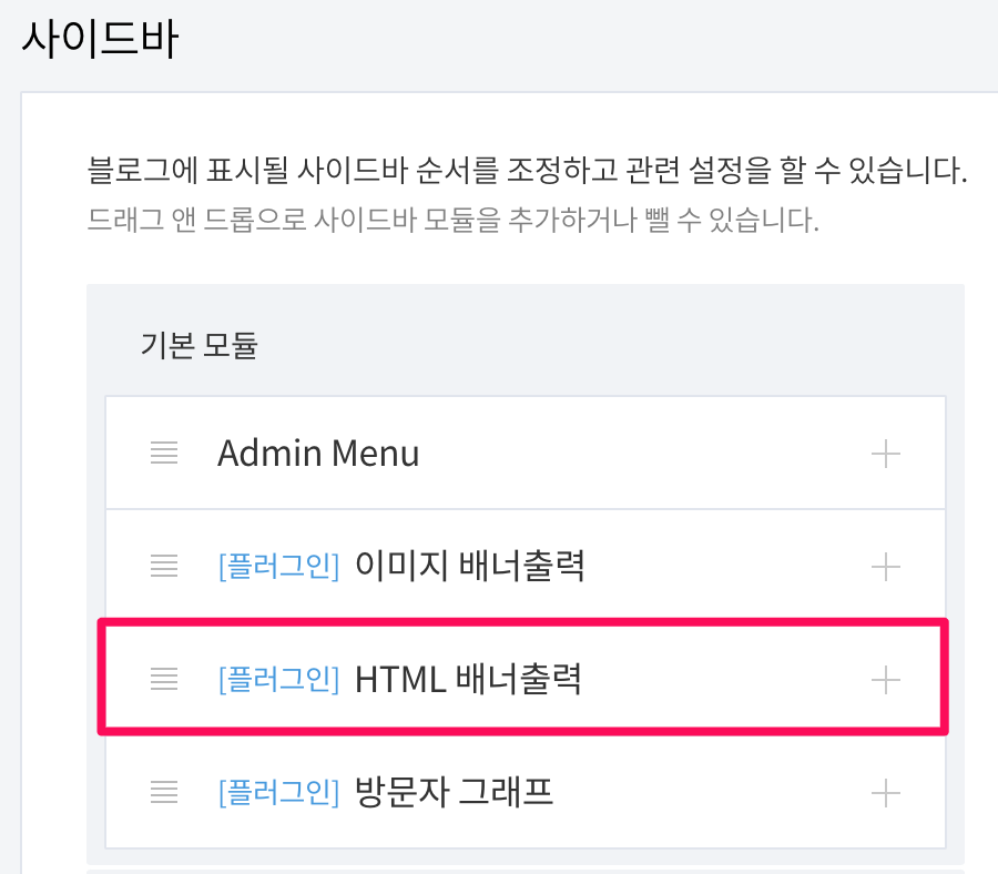 티스토리 > 사이드 바 설정 > HTML 배너 설정 추가