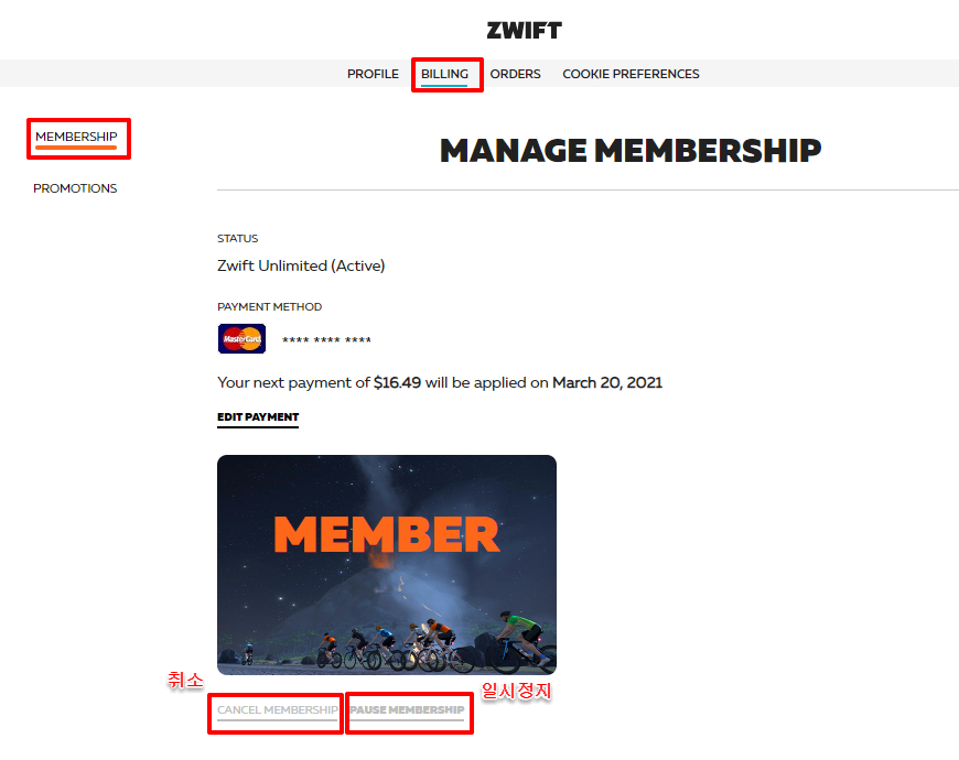 즈위프트(Zwift) 매달 결제 및 해지 방법