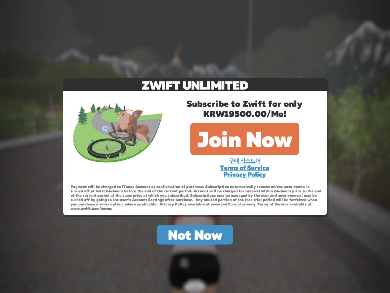 오늘은 즈위프트를 가입 한 후, 일정 km를 달려 무료가 만료되었습니다. 그래서 즈위프트를 조금이라도 더 싸게(?) 구매할 수 있지 않을까 검색을 해보고 결제를 진행하고자 합니다.