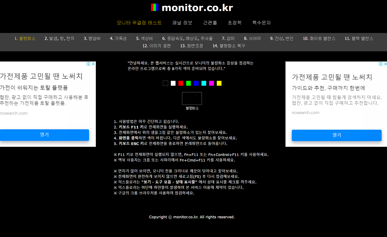 이번에 모니터를 구매하면서, 무결점 테스트를 해보기위해서 인터넷을 검색해보니, 아래의 페이지가 나오네요^^