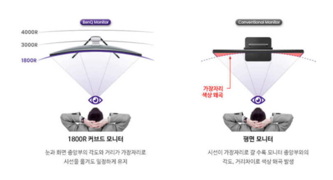 - 커브드의 경우 : 눈으로부터의 거리가 일정하게 유지