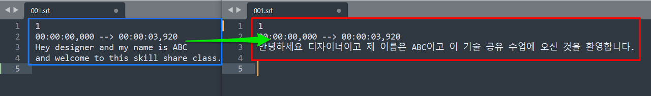 - 현재 자막은 (*.srt) 형태만 번역 가능합니다. 허용되는 srt 포멧은 다음과 같습니다.