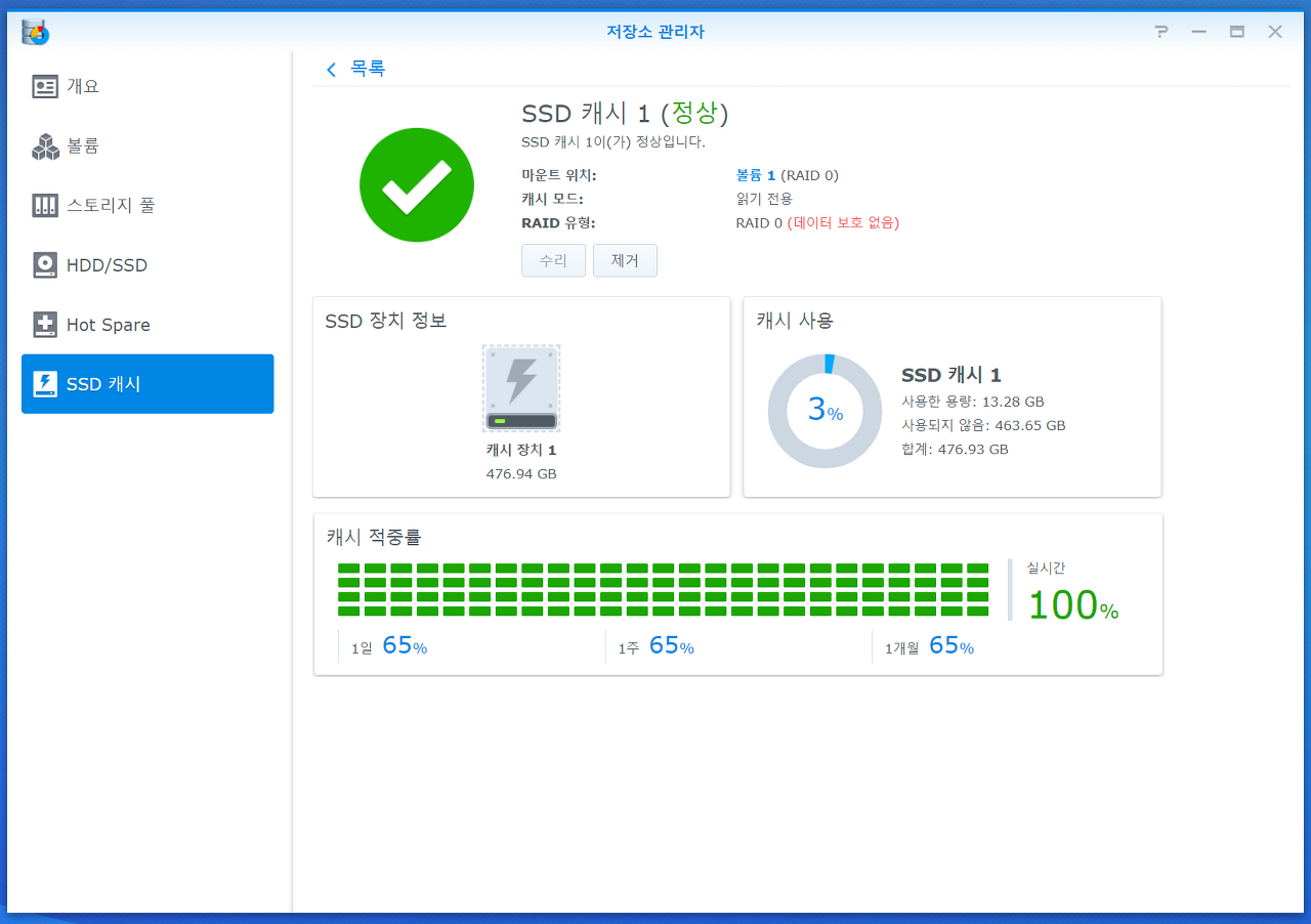 참고 (시놀로지 SSD 캐시 페이지 참고)
