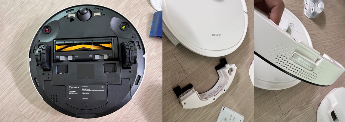 그리고 부품 박스를 열어보면, 상단이미지와 같이 있습니다. 설명서에는 조금 부족함이 있지만, 물통이 달려있는 부품으로 봐서는 물걸레질을 위한 도구가 아닐까 하네요!